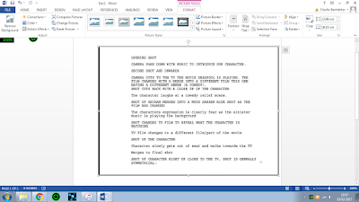 Here is a script that I have written for my movie it only involves shots and action as that is all that is is my short movie, a script is written to get all the dialogue and any action or expressions origanised and noted down.